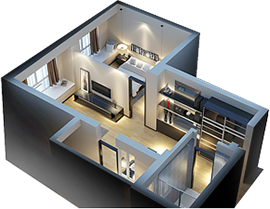 50处量房体系,精准测量合理规划; 720°全景设计效果 私域材料库1:1建模,门店实景选样,所见即所得;