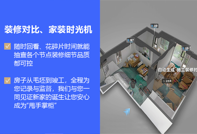 房子从毛坯到竣工,全程为您记录与监督,我们与您一同见证新家的诞生让您安心成为“甩手掌柜”