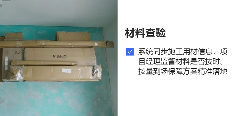 系统同步施工用材信息,项目经理监督材料是否按时、按量到场保障方案精准落地