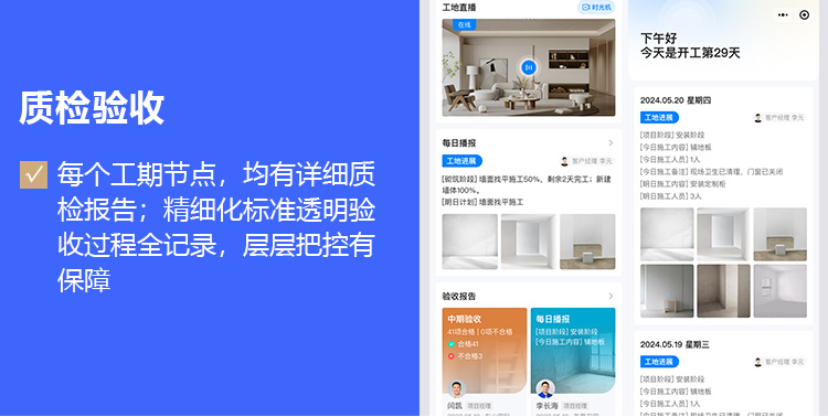 随时回看、花碎片时间就能抽查各个节点装修细节品质都可控
